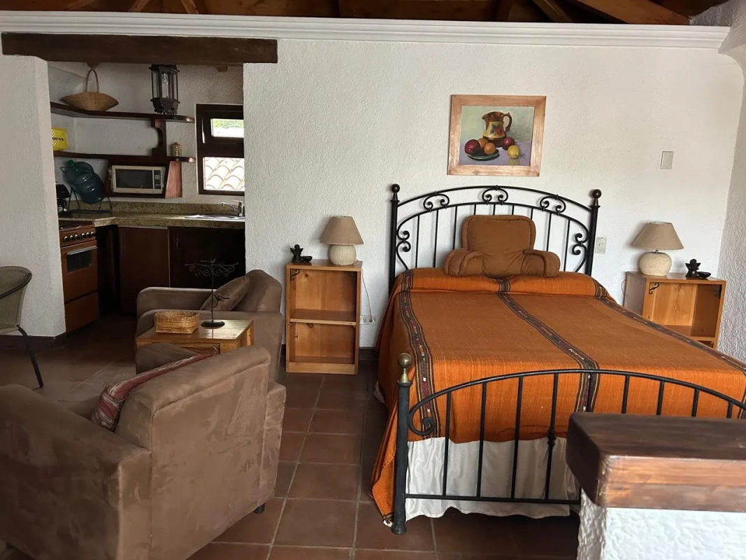 Alquilo linda suite totalmente amueblada en Antigua con preciosa vista al volcán de Fuego. Dentro de exclusivo condominio, al lado de Gravileas. Ideal para persona sola o pareja.